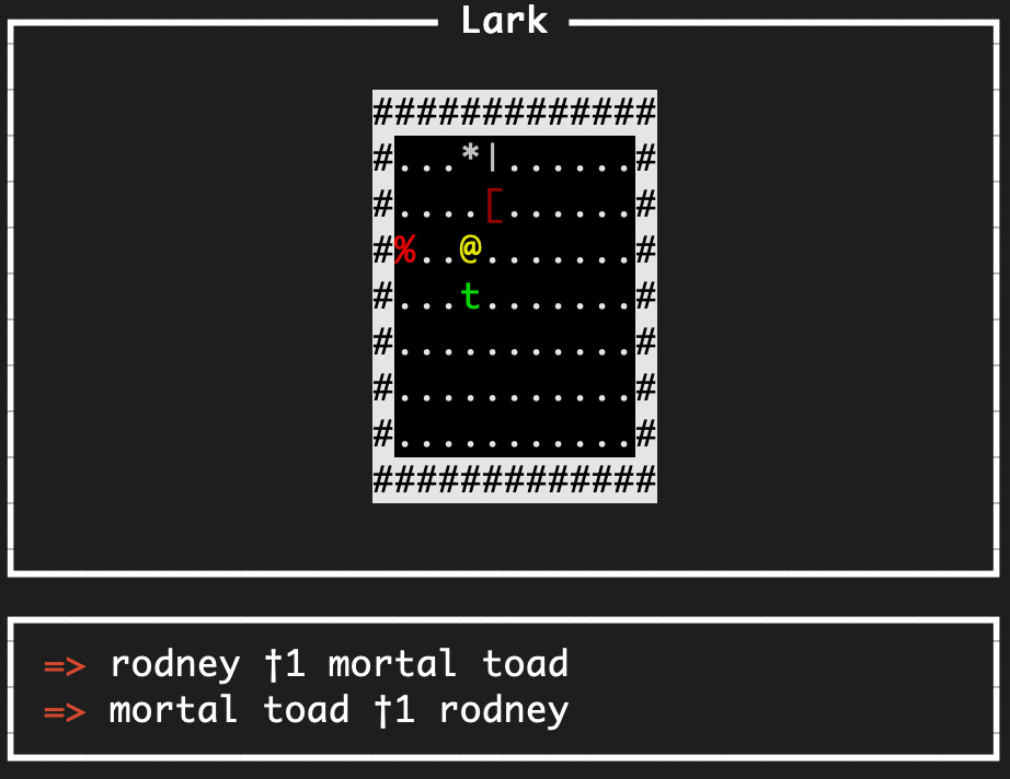 Since writing the initial draft of this post, I started a new roguelike project. It’s called Lark. You might notice the first commits are from October 2024; I’ve started this post over from scratch three times already. (Writing about roguelikes is hard too, I guess.)